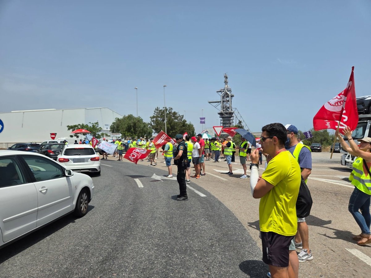 La huelga, respaldada por las secciones sindicales de UGT, CCOO, CSIF y USO, ha estado acompañada de una concentración de 13 horas a 15 horas en la rotonda de acceso a la zona portuaria.
