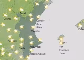 Finalmente, en la provincia de Alicante, las máximas superarán la barrera de los 30 grados en Orihuela (31) y se quedarán a las puertas en Elche (29), mientras que en la capital marcarán 25. Por su lado, las temperaturas mínimas rondarán los 15, salvo en Alcoi, donde bajarán hasta los 12.