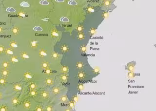 Finalmente, en Alicante, se esperan máximas de 23 en Alicante, 22 en Dénia y Elche, 21 en Orihuela, y 17 en Alcoi. Las mínimas serán de 5 en Alcoi, 9 en Elche, 10 en Alicante y Orihuela, y 11 en Dénia.