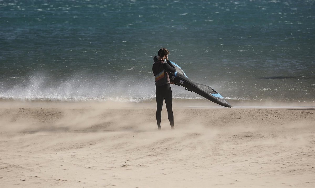 Archivo - Un hombre en la playa de la Malvarrosa, mientras hay fuertes rachas de viento. - Rober Solsona - Europa Press - Archivo