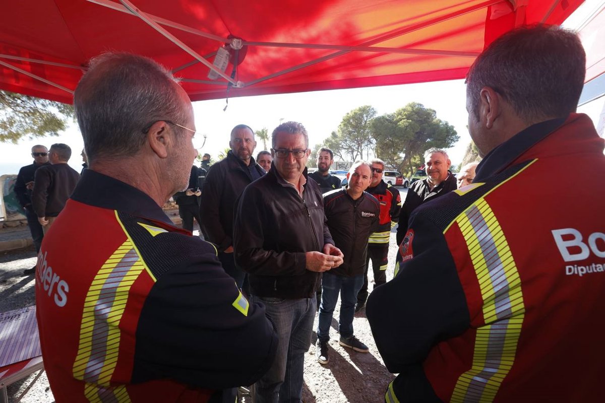 El secretario autonómico de Seguridad y Emergencias, Javier Montero, ha visitado el Puesto de Mando Avanzado (PMA) para conocer de primera mano el alcance y evolución del fuego, y también el presidente de la Diputación de Alicante, Toni Pérez.