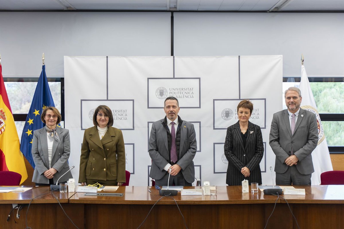 La rectora de la Jaume I, Eva Alcón; la rectora de la Universitat d'Alacant, Amparo Navarro; el rector de la UPV, José Capilla; la rectora de la UV, Mavi Mestre; y el rector de la Universidad Miguel Hernandez, Juan José Ruiz. - Jorge Gil - Europa Press