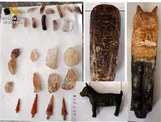 Los dos hombres, ambos de nacionalidad española, han quedado provisionalmente en calidad de investigados como presuntos autores de los delitos de contrabando, hurto, apropiación indebida y contra el patrimonio histórico. También por el delito de estafa, ya que uno de ellos falsificaba algunas piezas y las ofrecía en el mercado como auténticas.