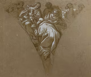 Se trata de un dibujo realizado con tinta y albayalde, un material utilizado como pigmento, sobre preparación a lápiz en soporte de papel. Representa la Adoración de los Reyes y sitúa a la izquierda a la Virgen sentada con el Niño sobre sus rodillas. Detrás de ella, en pie, se encuentra san José.