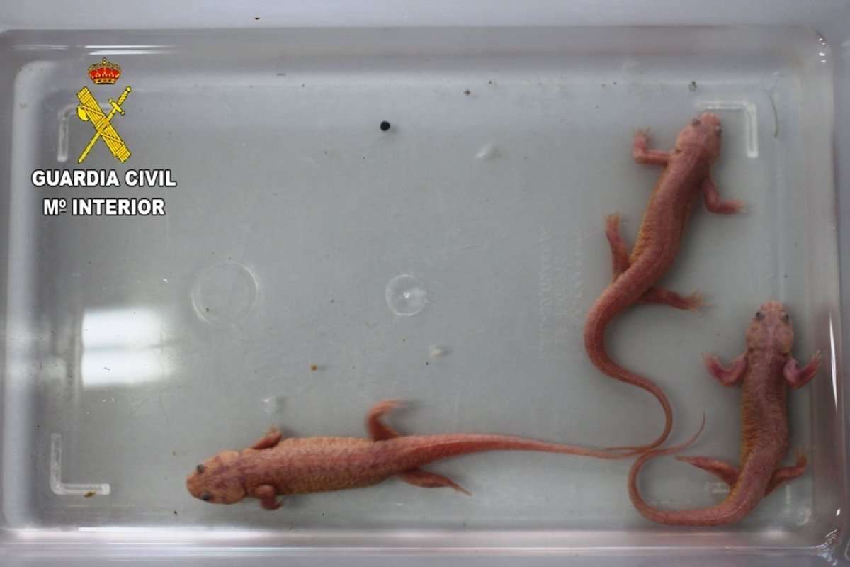 La Guardia Civil ha recuperado tres tritones (Pleurodeles Waltl) en un establecimiento de Vinaròs (Castellón) por estar incluidos en el listado de especies silvestres en régimen de protección especial, según ha informado el instituto armado en un comunicado.