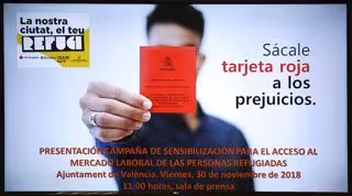 Personas refugiadas y solicitantes de protección internacional en València han dado a conocer sus currículums profesionales en la campaña del Ayuntamiento 'Sácale la tarjeta roja a los prejuicios', que pretende "desmontar" los mitos sobre las capacidades laborales de este colectivo. Casos reales de arquitectos, pedagogos e informáticos ilustran esta iniciativa dirigida "fundamentalmente" al empresariado.