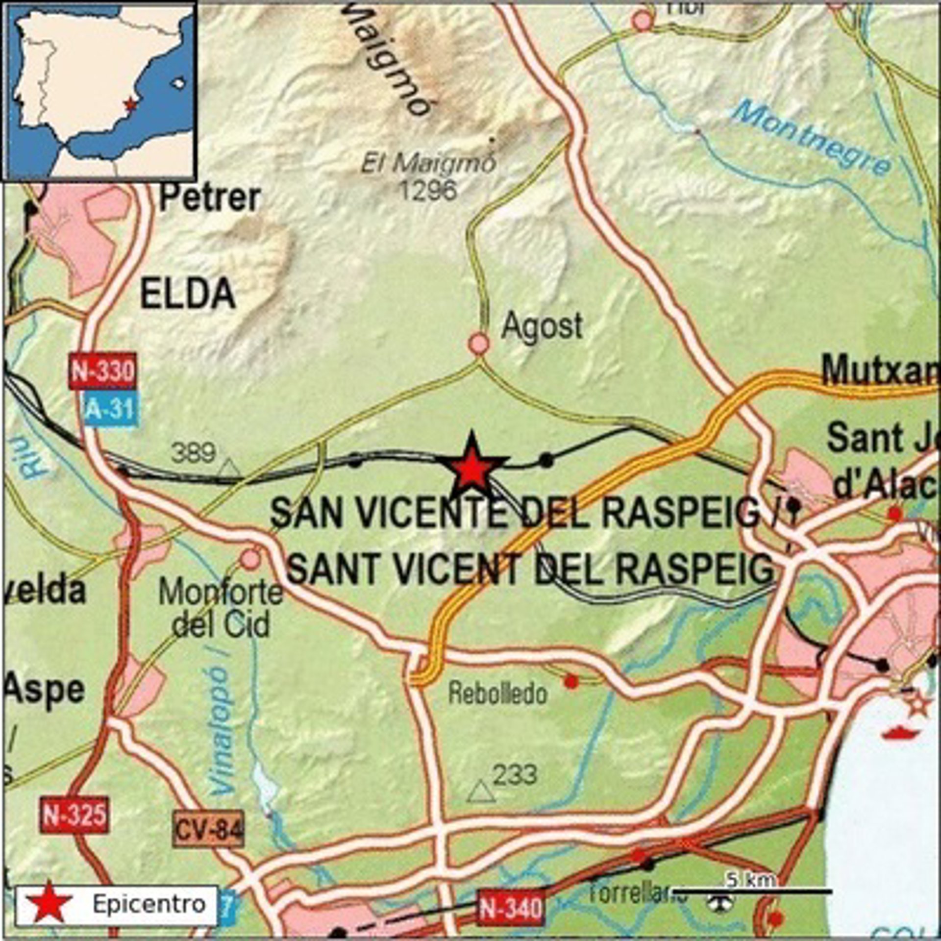 El seísmo se ha producido en la madrugada de este viernes, a las 2.38 horas, y su epicentro se ha localizado en el sur del municipio de Agost. En concreto, ha tenido lugar en el punto que se localiza entre la latitud 38.4020 y la longitud -0,6448, muy próximo a Sant Vicent del Raspeig.
