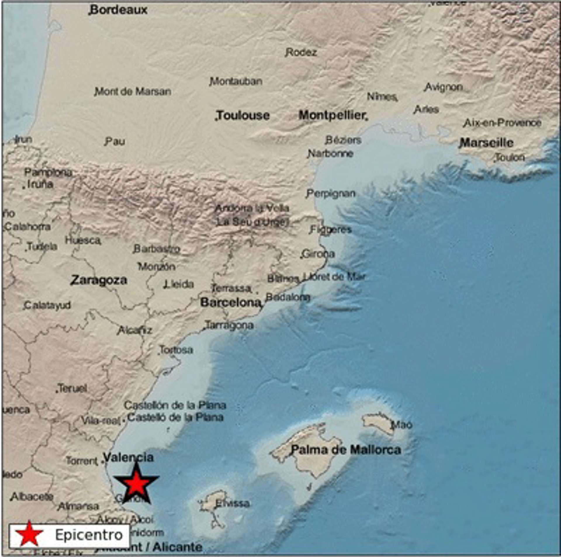 Según se recoge en los datos de la web del Centro Nacional de Información Geográfica, el epicentro del seísmo se encuentra en el golfo de Valncia, a una profundidad de 16 kilómetros y a una latitud de 39.2011 y longitud 0.1628.