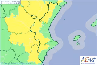 El interior de la Comunitat Valenciana está en alerta amarilla, riesgo, por lluvias y tormentas que a partir del mediodía pueden ser localmente fuertes, según la previsión de Aemet.