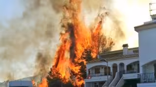 El incendio, que afectó a una amplia zona cercana a campings y urbanizaciones, generó una densa columna de humo en esta zona de Peñíscola rodeada de viviendas.