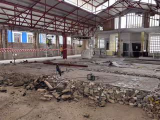Las obras se centran ahora en el refuerzo de los pilares exteriores e interiores que soportan la estructura, para después llevar a cabo la demolición de los forjados intermedios entre pilares.