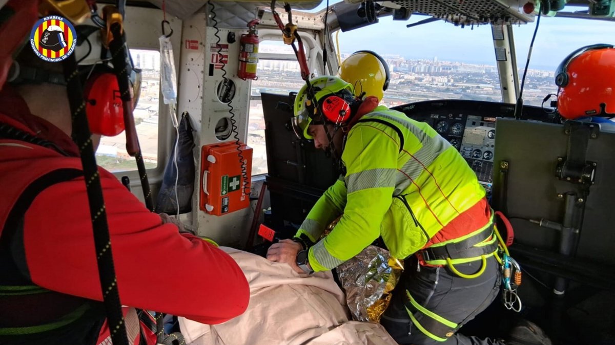 El equipo de rescate ha atendido al hombre herido, ofreciéndole las primeras atenciones médicas, para así, posteriormente, trasladarlo al Hospital La Fe.