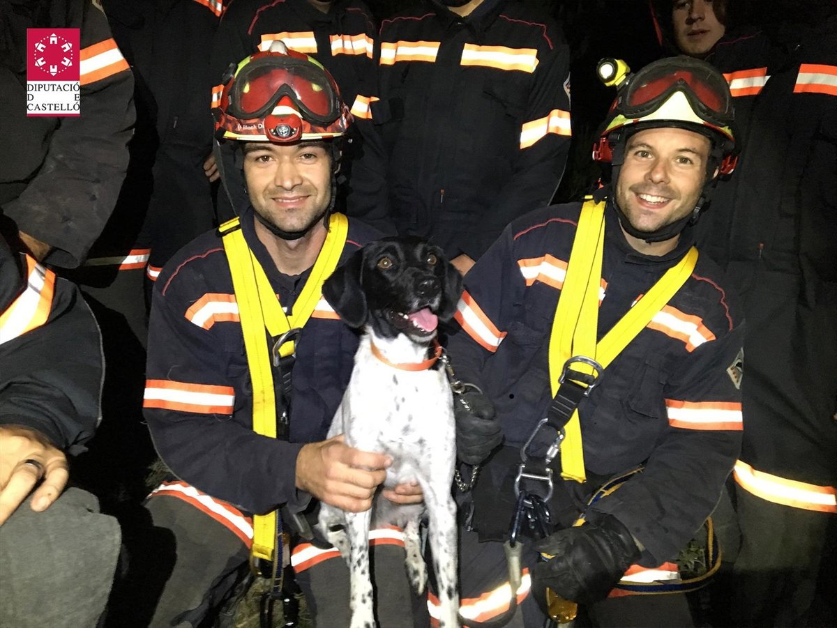 Los bomberos rescataron este martes a un perro que se había caído al interior de una sima de unos 10 metros de profundidad en una zona forestal de la localidad castellonense de Atzeneta del Maestrat mientras paseaba con sus dueños.