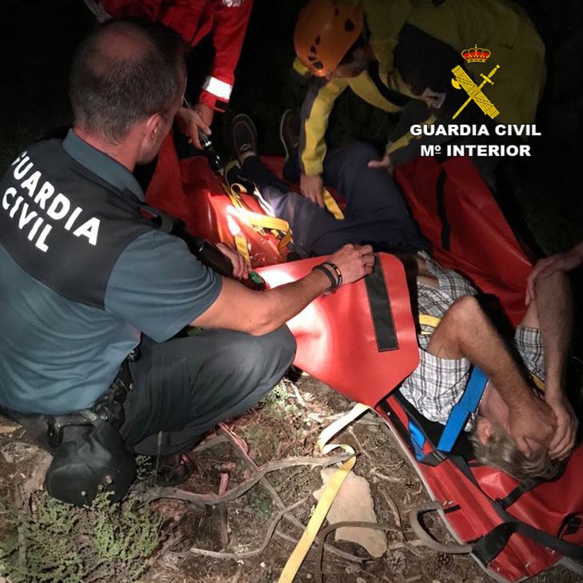 Por ello, los guardias civiles decidieron cargar al hombre y, tras recorrer un kilómetro y medio, lograron vislumbrar las luces de los vehículos de los bomberos. Una vez asegurado en camilla, fue transportado hasta la ambulancia y posteriormente a un centro hospitalario.