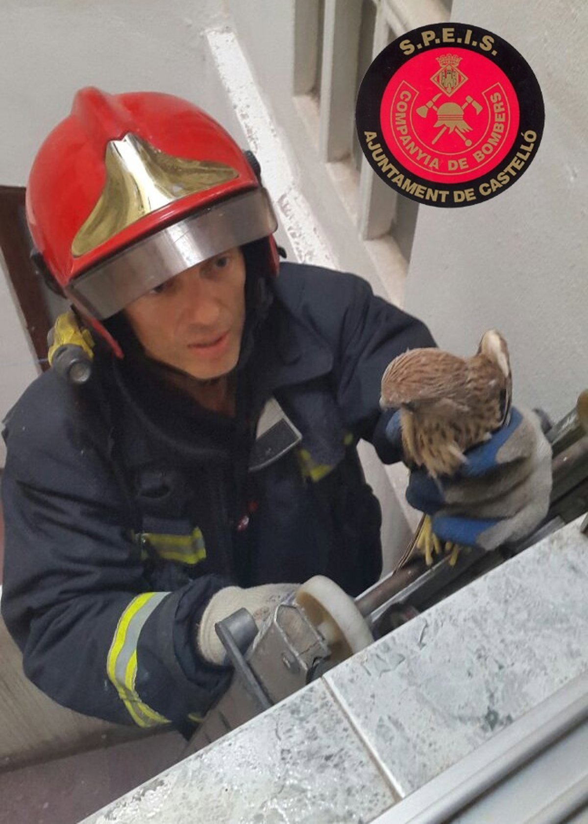 Agentes de la Policía Local de Castellón de la Unidad Uproma, junto con los bomberos municipales, han rescatado a un cernícalo --un rapaz-- herido que fue localizado en un patio de luces de un inmueble de la calle Joaquín Costa de la capital de La Plana.