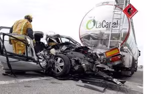 Coche empotrado contra el camión cisterna. - CONSORCIO PROVINCIAL DE BOMBEROS