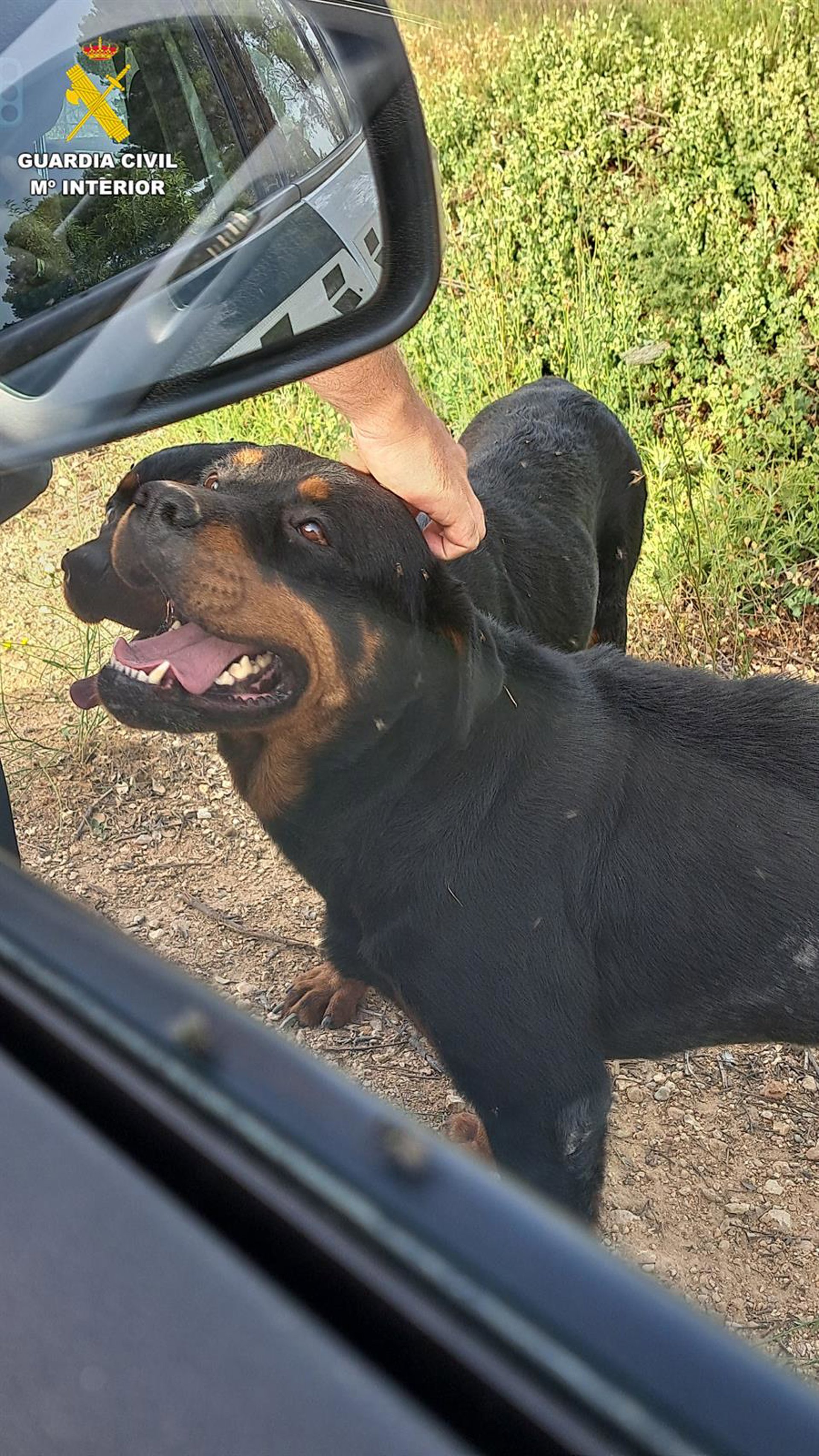 Personados pocos minutos después, los guardias civiles se encontraron con dos hembras de Rottweiler abandonadas y con evidentes signos de deshidratación.