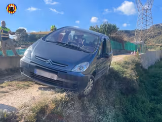 Los efectivos han rescatado al hombre en buen estado y han remolcado el vehículo a la vía, con la colaboración de trabajadores y maquinaria de la obra del puente de la Cueva del Turche, en Buñol.
