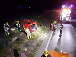 El siniestro se produjo este sábado, cuando un vehículo sufrió un accidente con vuelvo lateral. Hasta el lugar se desplazaron dos dotaciones y 12 bomberos.