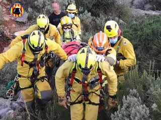 Los bomberos recibieron un aviso sobre las 13.30 horas de este domingo que les alertaba del incidente y hasta el lugar indicado se desplazó un dispositivo con siete miembros del Grupo de Rescate en Altura GERA, varios mandos del Consorcio, brigadas de la Diputación, bomberos forestales y un helicóptero de rescate de la Generaitat. Además, se contó con el apoyo de voluntarios del Grupo de Espeleosocorro.