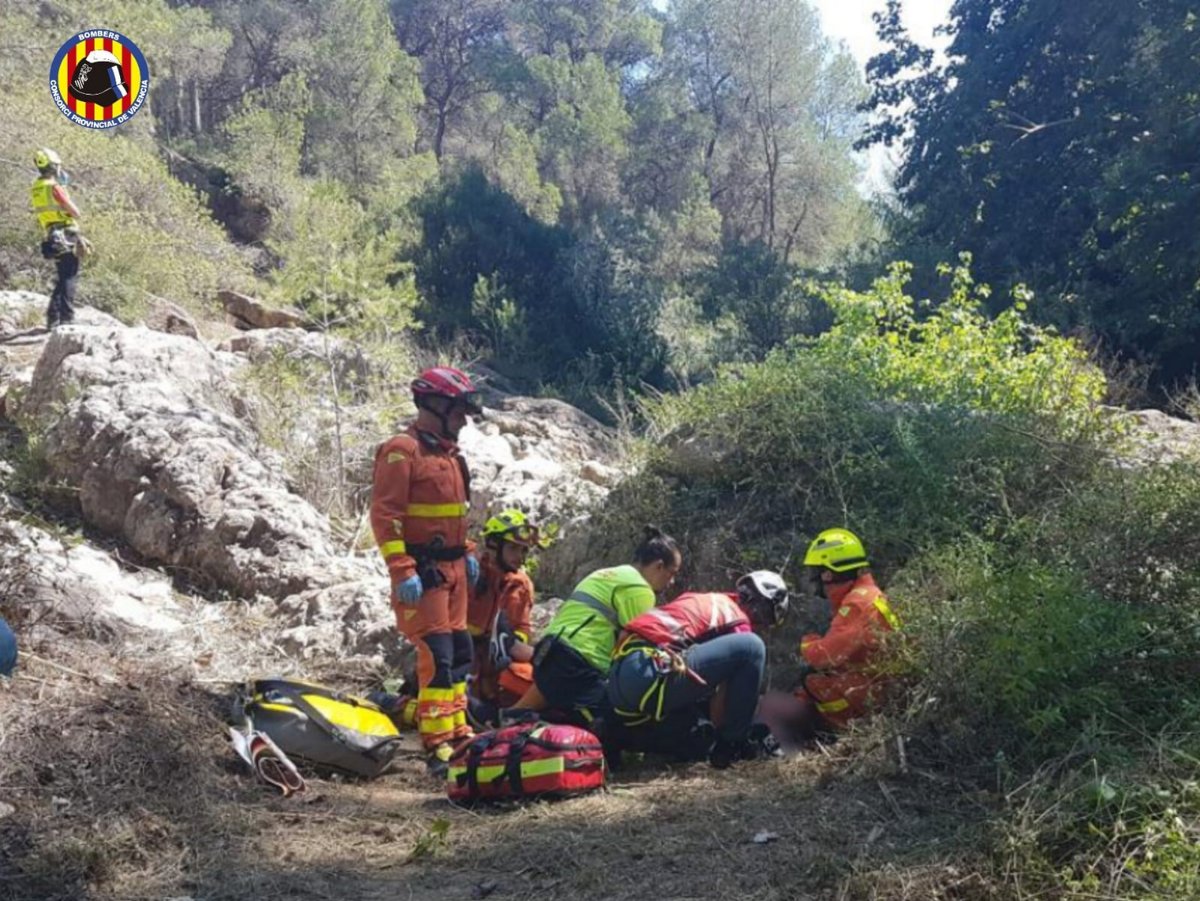 Efectivos del Consorcio de Bomberos de Valencia han rescatado a una mujer lesionada en la pierna al sufrir una caída en una zona rural del municipio de Chiva en Calicanto, según ha informado el cuerpo provincial.