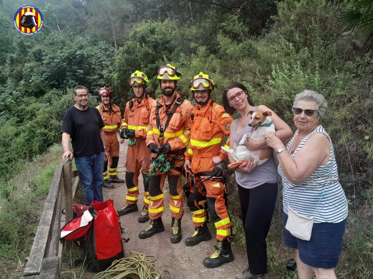 Efectivos de bomberos han recatado este domingo a una mujer y su perro que habían caído desde la senda de la Cova Negra de Xativa, según ha informado el Consorcio Provincial de Bomberos de Valencia.