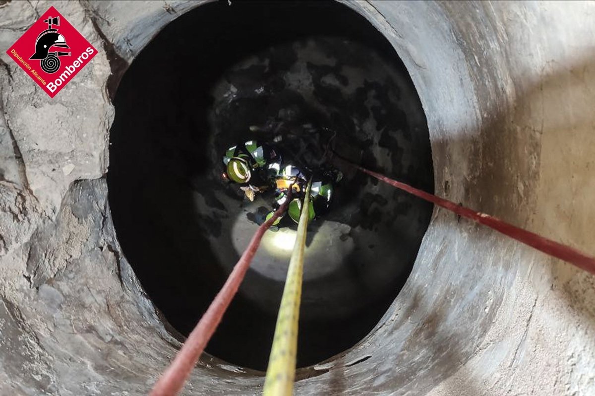 Efectivos del Consorcio Provincial de Bomberos de Alicante han rescatado a un perro que había caído a un pozo sin agua y a nueve metros de profundidad en Úbeda, una pedanía de Pinoso.