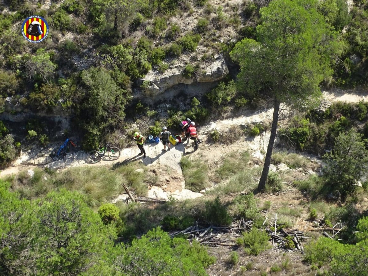 El primero de los rescates ha sido a un ciclista de 65 años que se había caído y sufrido una lesión en la pierna mientras hacía una ruta en Fontanars dels Alforins.