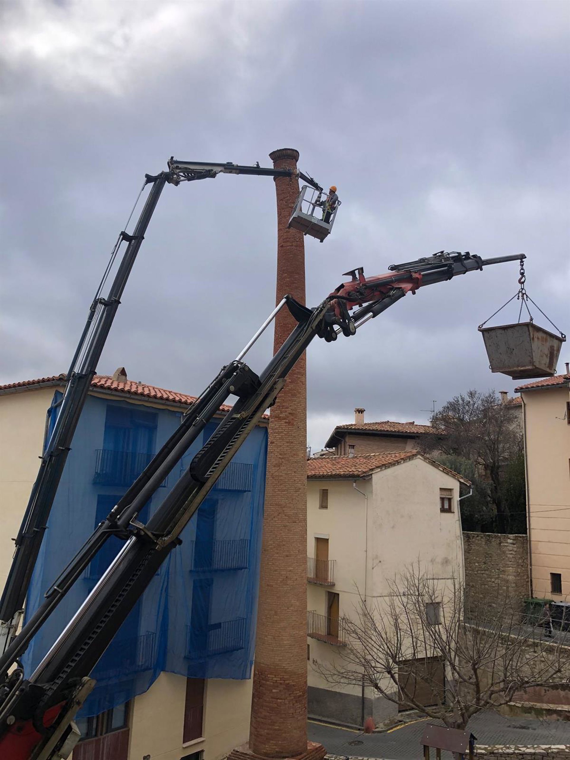 Obras para la recuperación de la chimenea de la Fàbrica del Tint de Morella - GVA