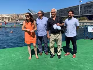 (I-D) Mónica Oltra, Vicent Llorens, Joan Ribó Y Ramon Marrades En La Piscina Salada De La Marina De Valncia - GVA