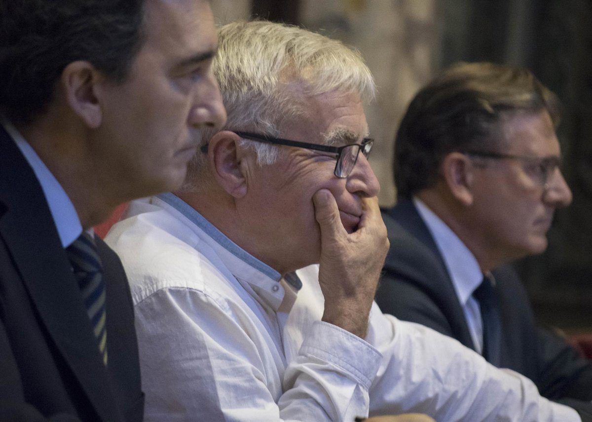 El alcalde de Valencia, Joan Ribó (2i), durante una sesión ordinaria del pleno del Ayuntamiento de Valencia, en la que se han tratado entre otros temas, el problema de los vertidos en las playas, la movilidad en la ciudad y la marcha LGTBI. - Jorge Gil - Europa Press