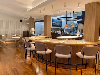 La reforma, diseñada por Estudio Rooom y materializada por la constructora valenciana Construvelo SL, ha permitido la creación de espacios abiertos y de una barra de 86 centímetros de profundidad, bautizada como 'Chef's Corner', con capacidad para nueve comensales. De las paredes del local cuelgan los cuadros de su hijo Bastián Sinsé.