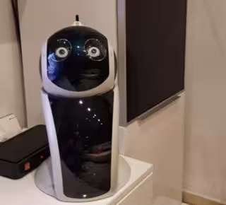 Se trata del robot QBO (QUIBIO), capaz de detectar con su cámara a alguien cuando lo tiene delante y activarse para dialogar con la persona en cuestión. De este modo, además de presentar el evento, estará disponible para que los participantes y el público puedan interactuar con él.