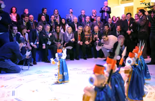 La presentación ha estado amenizada por la presencia de unos pequeños robots a cargo de la Universidad de Valencia, los humanoides Naos, que, ataviados con la indumentaria típica de la festividad de los Moros y Cristianos, han hecho una performance que los asistentes han aplaudido y celebrado.