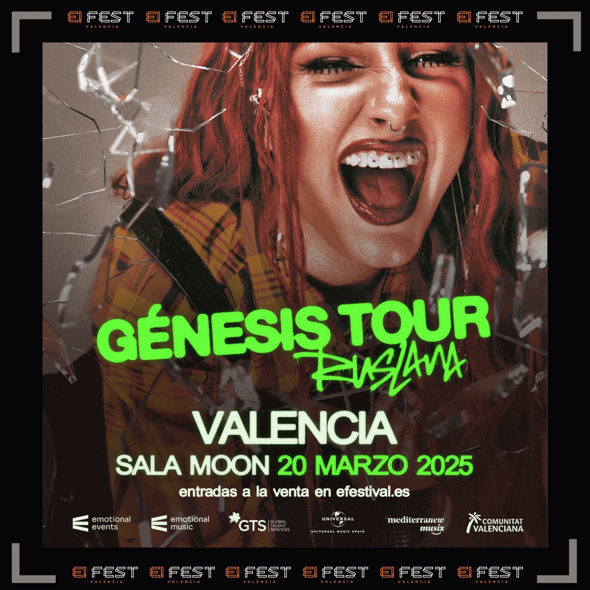 Ruslana regresará a Valencia el próximo 20 de marzo para presentar su álbum debut 'Génesis' dentro de la programación de E!Fest Valencia 2025. La cita será en la sala Moon y la venta general de entradas comenzará este jueves a las 13 horas en la web del festival.
