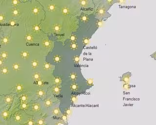 Finalmente, en Alicante, se esperan máximas de 36 en Orihuela, 35 en Elx, 34 en en Alcoi, y 32 en Dénia y Alicante. Las mínimas serán de 20 en Alcoi, 22 en Dénia, 23 en Elx y Orihuela, y 24 en Alicante.