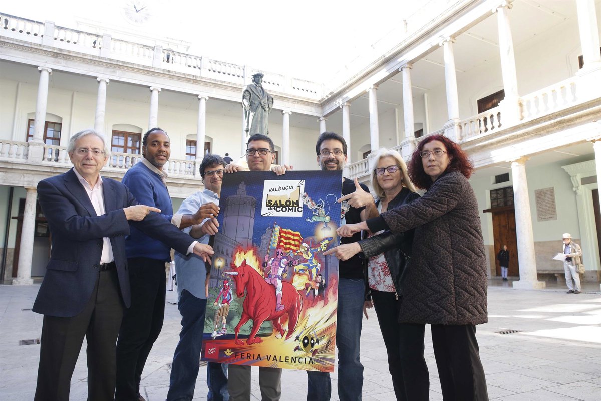 El dibujante de Marvel Salva Espín ha subido a Deadpool valencianizado a lomos de un unicornio en el cartel oficial del Salón del Cómic, que se celebrará del 28 de febrero al 1 de marzo en Feria Valncia con una oferta centrada en la dicotomia entre héroes y villanos.