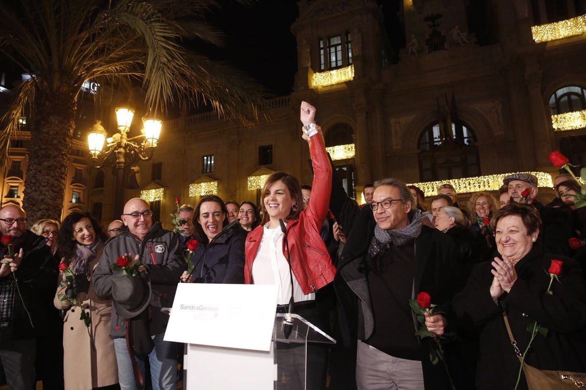 La portavoz del PSPV en el Ayuntamiento de València, Sandra Gómez, ha presentado este martes su candidatura a la Secretaría General de la formación en la ciudad con un acto en la plaza del Ayuntamiento. "Me presento para que transformemos este partido en la fuerza para ganar València en 2019", ha subrayado.