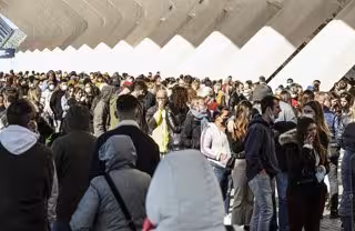 Varias personas hacen cola para recibir la vacuna contra el Covid-19, en un dispositivo situado junto al Museo de las Ciencias de Valncia - Rober Solsona - Europa Press