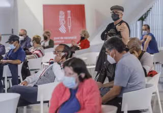 Archivo - Varias personas esperan tras ser vacunados en la Ciutat de les Arts i les Cincies - Rober Solsona - Europa Press - Archivo
