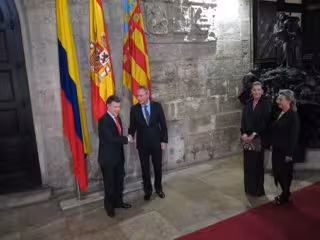 El presidente de la Generalitat ha destacado de Santos su "tesón y coraje" como defensor de la paz tras casi medio siglo de conflicto armado en Colombia, trabajando "en cuerpo y alma" para conseguir un país "donde el respeto a los derechos humanos y el fin de la violencia sean el fundamento de la prosperidad y el bienestar de su pueblo".