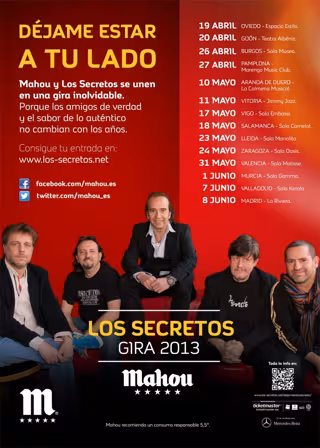 El próximo 19 de abril Los Secretos volverán en Oviedo a los escenarios en el primer concierto de su nueva gira, 'Déjame estar a tu lado', que aúna dos de sus mayores éxitos, 'Déjame' y 'A tu lado', que llegará a Valencia el próximo 31 de mayo.