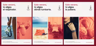 'Tú eliges ser responsable' busca el impacto visual con carteles donde se muestra una máscara de buceo, una toalla en la playa y la pulsera de un festival junto a un respirador, una cama y otra pulsera, en este caso, de las que ponen en la muñeca a las personas que ingresan en un hospital.