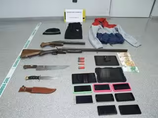 En los tres registros domiciliarios simultáneos en las localidades de Benimodo, Alfarp y Llombai, los guardias civiles recuperaron tanto la escopeta recortada empleada en los robos como otra pendiente de estudio, además de dos cuchillos de grandes dimensiones, prendas de vestir, parte de la recaudación y el coche utilizado para los delitos. El arma y la cuchillería figuraban como sustraídas en un robo con fuerza en una vivienda de Simat de Valldigna.