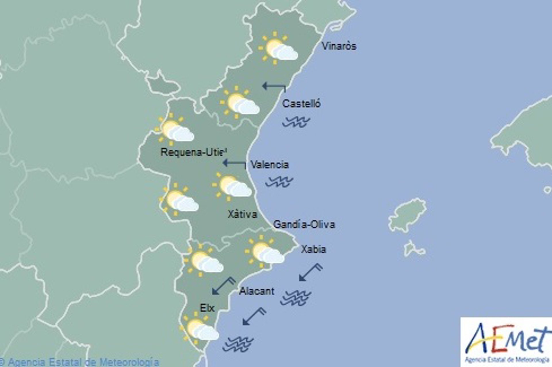 La semana comienza con intervalos nubosos que pueden dejar lluvias dispersas en el interior de la Comunitat Valenciana y temperaturas máximas que alcanzarán los 26 grados, según la predicción de la Aemet.