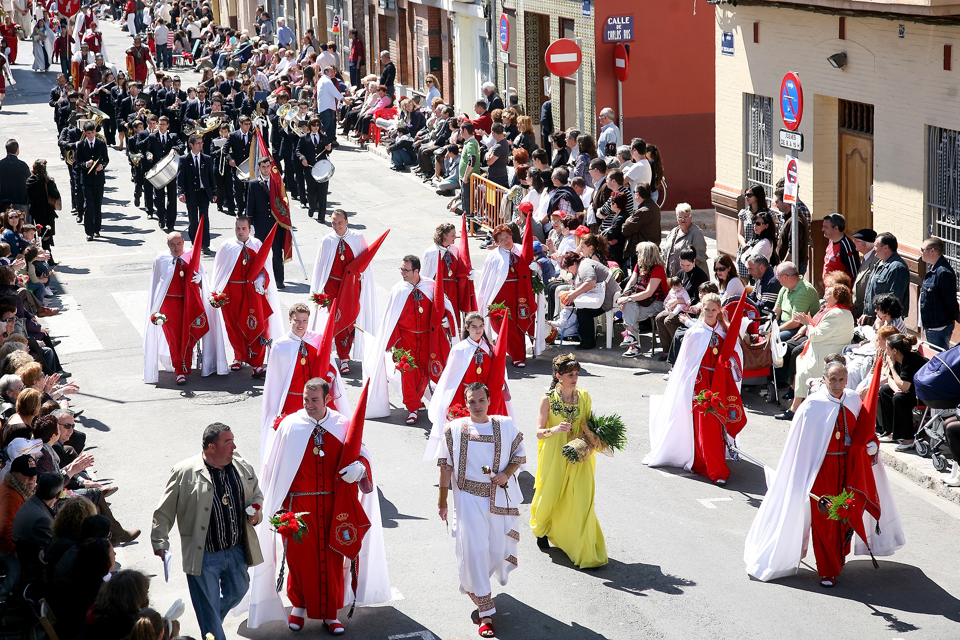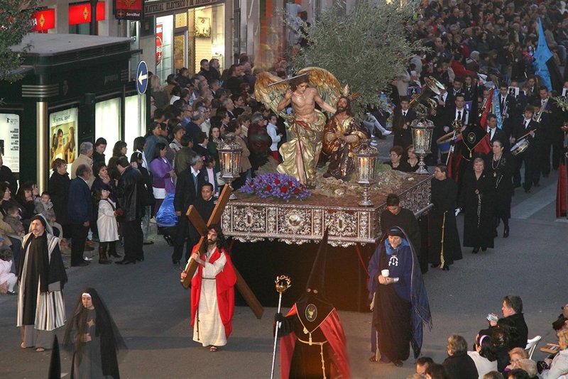 --27 DE MARZO. DOMINGO DE PASCUA DE RESURRECCIÓN: El Marítimo amanece con las representaciones del Encuentro entre la Virgen María y Jesús Resucitado, que tiene lugar en las cuatro feligresías. Posteriormente, se celebra el Comulgar de Impedidos en el que el Cuerpo de Cristo, llevado por los sacerdotes de cada parroquia bajo palio, es llevado a la casa de los enfermos que, por su estado, no pueden comulgar en el templo.