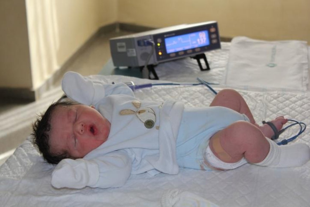 Al recién nacido se le toma la saturación de oxígeno postductal en el pie (pulsioximetría) y si alcanza un valor inferior al 95 por ciento (los valores normales están por encima de esta cifra hasta alcanzar el cien por cien), se inicia el protocolo de diagnóstico por el doctor Carrasco, del Servicio de Cardiología Infantil del Hospital Nisa 9 de Octubre.