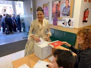 La coportavoz de Compromís y vicepresidenta de la Generalitat Valenciana, Mónica Oltra, ha acudido a votar a las primarias para el Congreso y el Senado de Iniciativa del Poble Valenci --una de las tres formaciones que integran Compromís-- vestida de fallera.