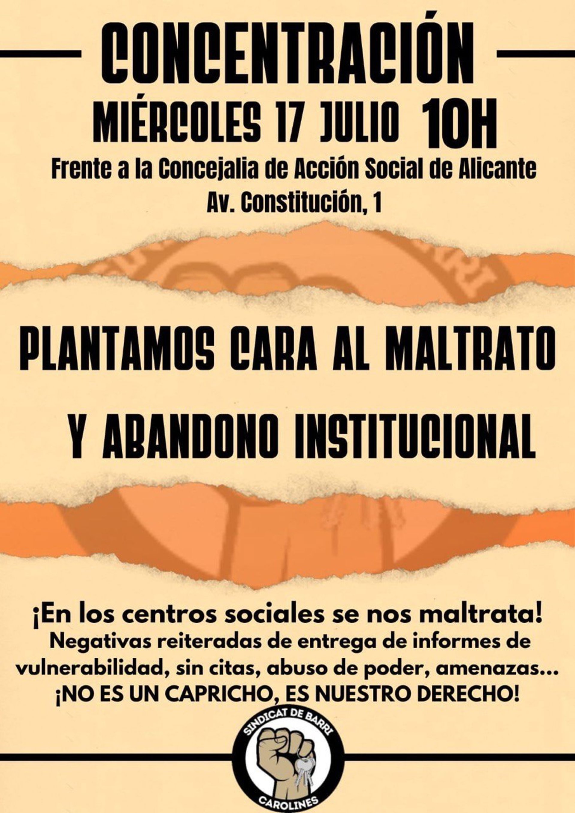 Sindicat de Barri se concentra el miércoles contra la "dejación de funciones" de Concejalía de Acción Social de Alicante - SINDICAT DE BARRI CAROLINES