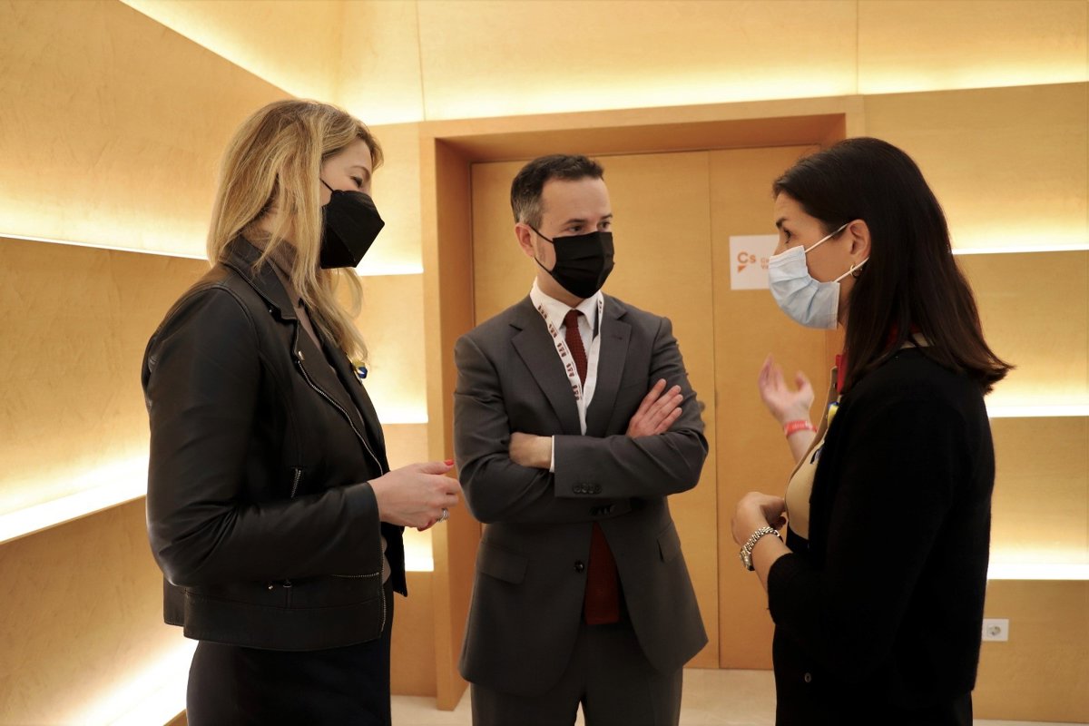 La diputada de Cs María Muñoz; el cónsul de Ucrania en la Comunitat Valenciana, Pablo Gil, y la síndica, Ruth Merino - CS